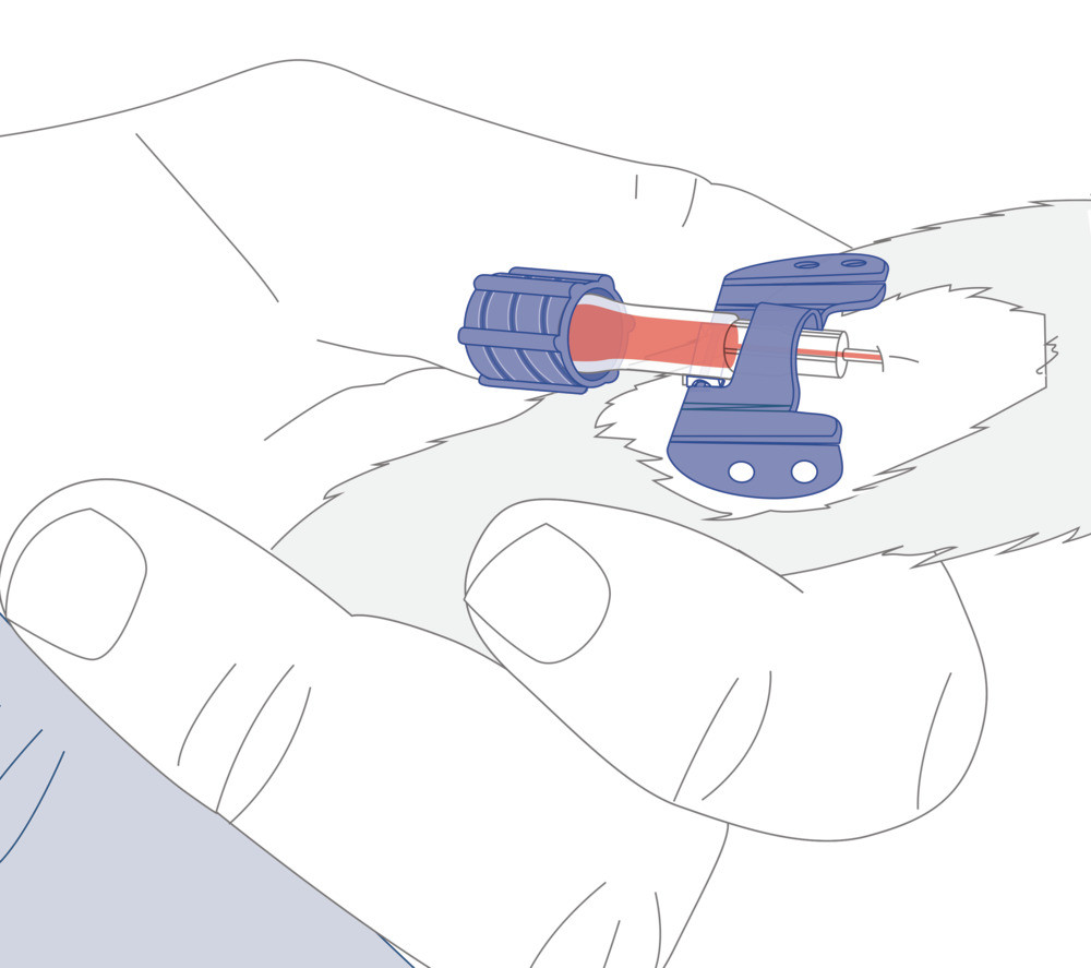 • Bewegliche, flexible Flügel mit zwei Rillen, um sich perfekt an die Gliedmassen des Tieres anzupassen. Farbcode entsprechend der Norm NF EN ISO 10555-5.