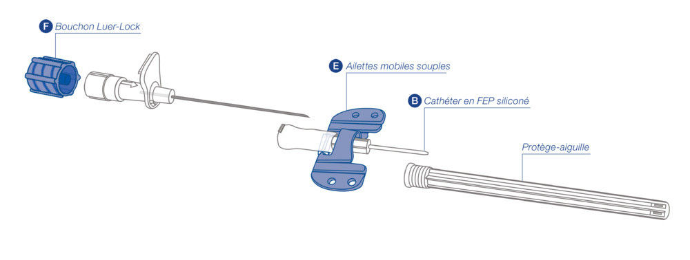 • Optimale Gleitfähigkeit dank des Silikons, mit dem die Nadel und der Katheter verkleidet sind.