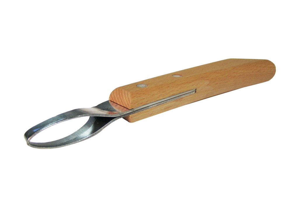 Englische Messer oder Klauenmesser aus Karbonstahl, ovale Form, Hufschmiedequalität.