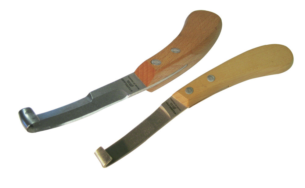 Englische Messer oder Klauenmesser mit Klingen aus Karbonstahl in Veterinärqualität.
