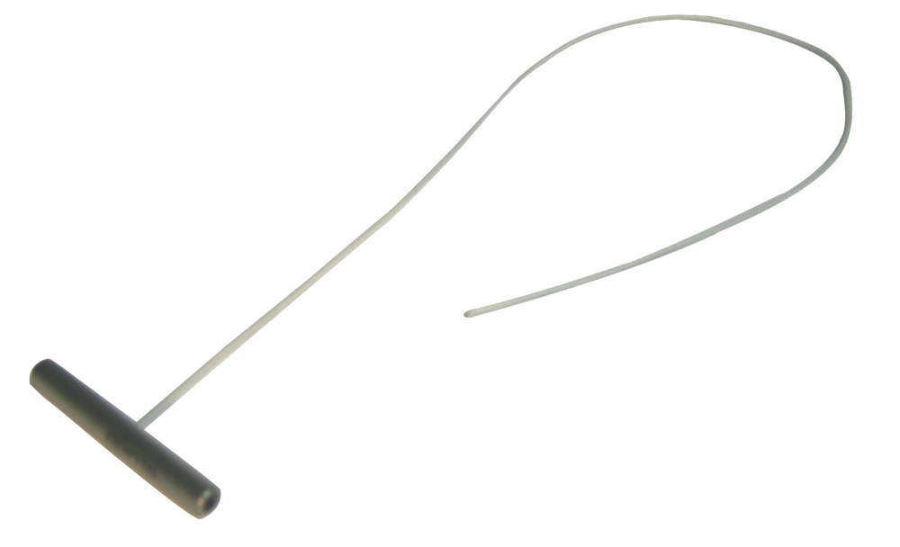 Edelstahlstäbchen mit Nähfäden zur Fixierung des Labmagens in der rechten Flanke durch Omentopexie nach der Methode von GRYMER STERNER.
