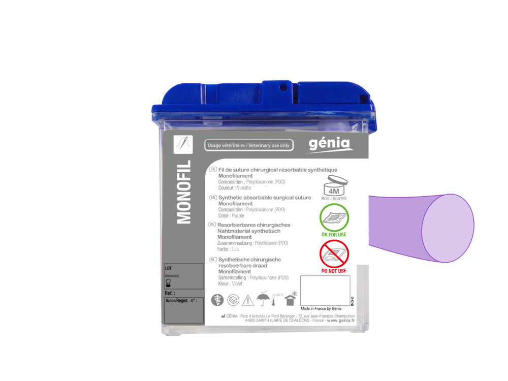 Hilo sintético reabsorbible monofilamento, violeta.
